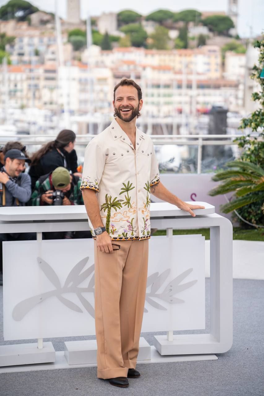 The following day, the mood shifted during the official photocall. In daylight, the cast appeared more relaxed, sharing natural interactions that suggested a strong creative connection. Borghi, alongside his co-stars, contributed to the sense of cohesion within the group, while director Oliver Hermanus stood with them, presenting a project shaped by sensitivity and careful storytelling.